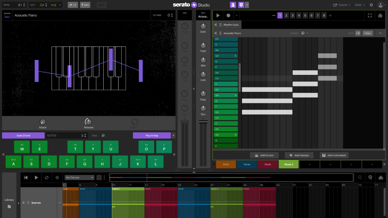 Introduced new creative tools such as Auto Chord — enabling users to play full chords with a single note — and the Song View, which allowed users to arrange and export complete tracks directly within Studio.
