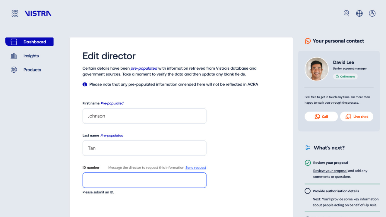 Vistra Onboard is a web application that acts as a first point of contact and streamlines how new clients are brought into Vistra’s global services ecosystem. I was involved in platform from its inception, helping design and deliver an MVP solution within three months. The goal was to create a web application that enabled Vistra to gather client information, perform KYC and AML checks, and begin billing for services as quickly as possible.